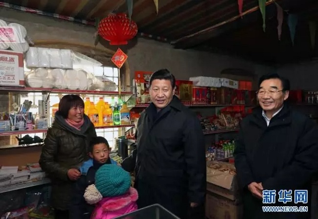 △习近平在龙泉关镇顾家台村的小卖部,了解农村日常用品供应情况。