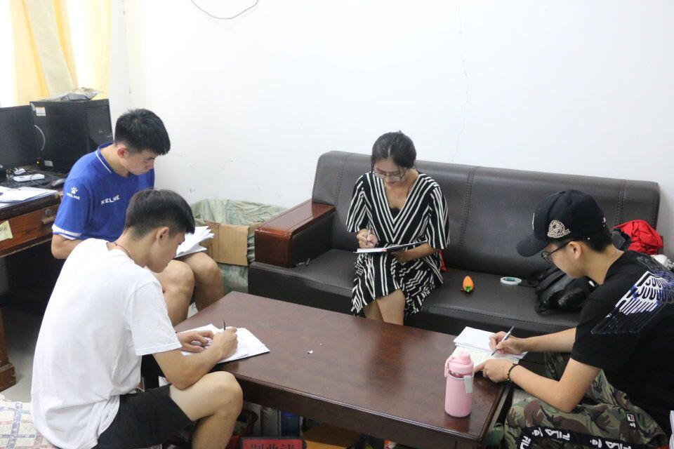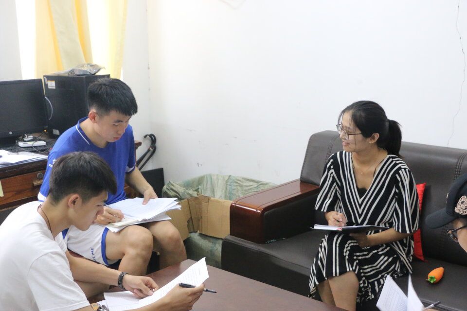 谈话室召开了2018级新生军训内务整理指导会议。2018级辅导员刘京、辅导员助理以及亚洲杯决赛直播