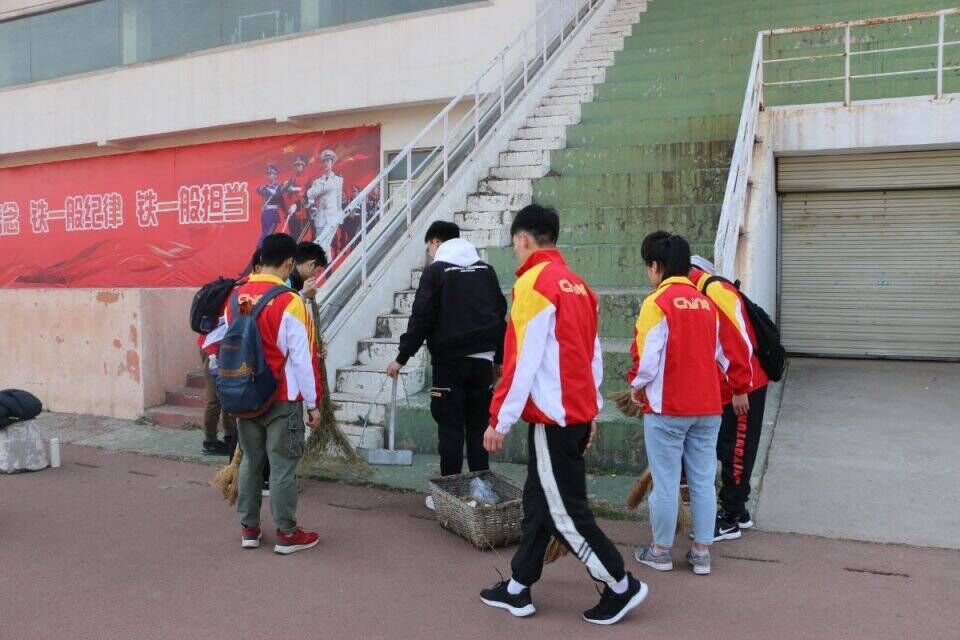 活动伊始,全体成员前往田径场清洁垃圾,到达目的地后,大家分工合作,同学们分布在田径场的各个角落,打扫田径场跑道、观众席、田径场中心的草地......每个人都不怕脏不怕累,认真的清扫着,不放过任何一个角落,用我们的劳动美化了师大的田径场。