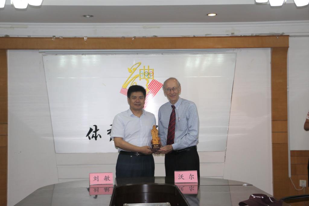 会见仪式后刘敏书记与沃尔博士代表双方互赠了礼物。沃尔博士在校孔子会堂为亚洲杯决赛直播