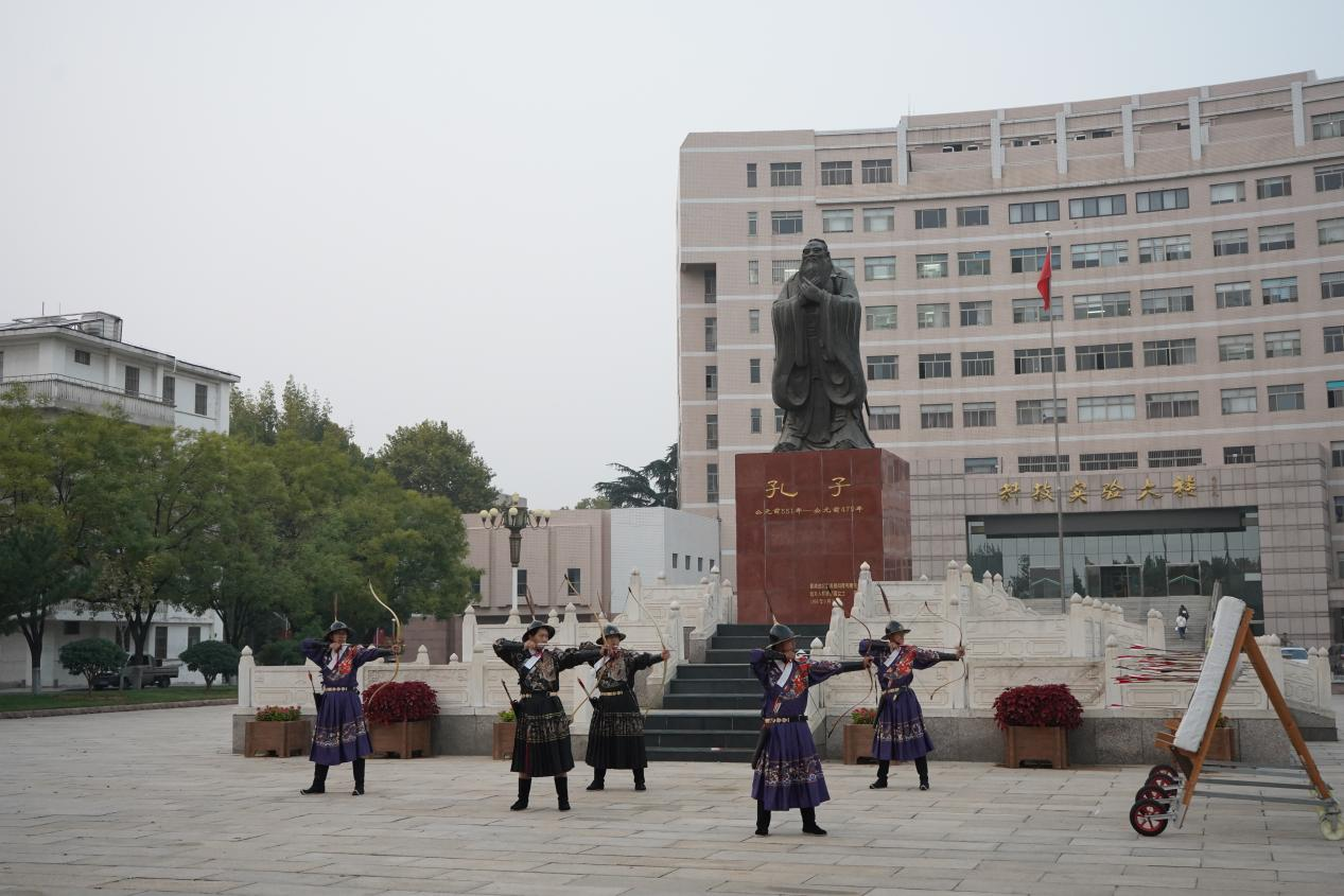 团委孔子射艺发展办公室承办的五人箭阵表演,精彩的表演获得了在场观众的阵阵掌声。