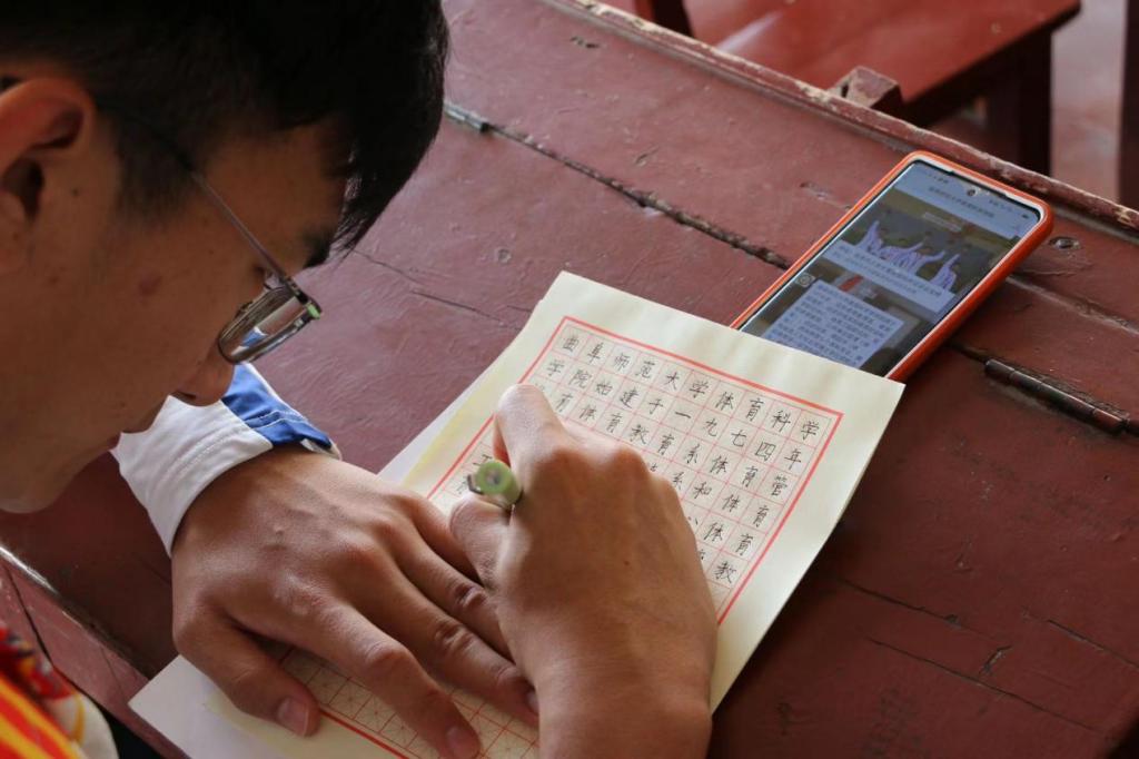 毛笔书写的同学们挥毫泼墨,一个个汉字风格各异,或气质敦和、古坚内润,或运笔纯正、舒展开阔,尽显毛笔的洒脱,在小小的方格之间,是风骨的展现,更是文化的传承。