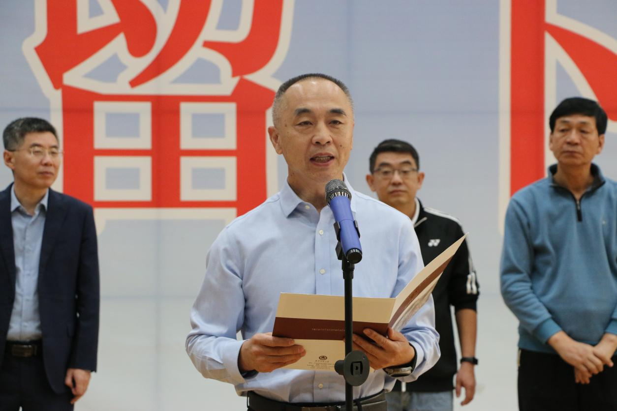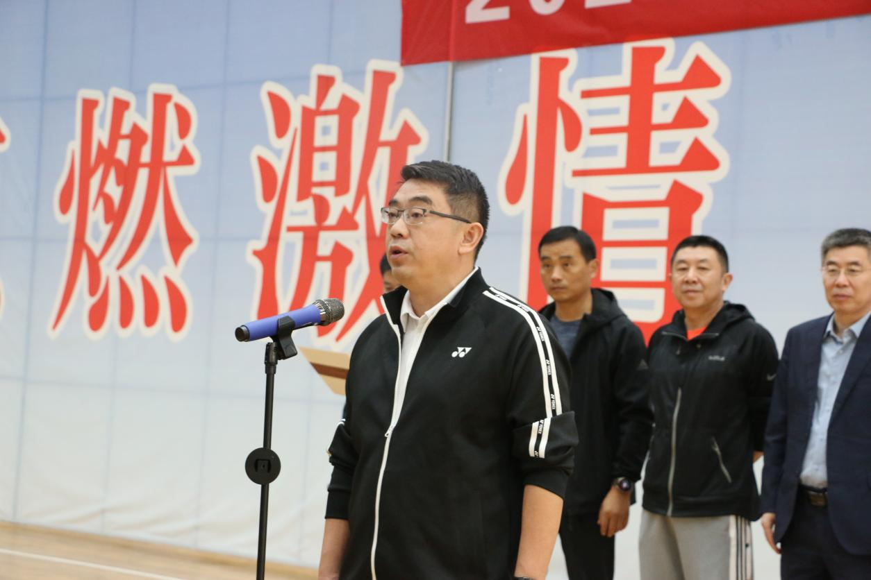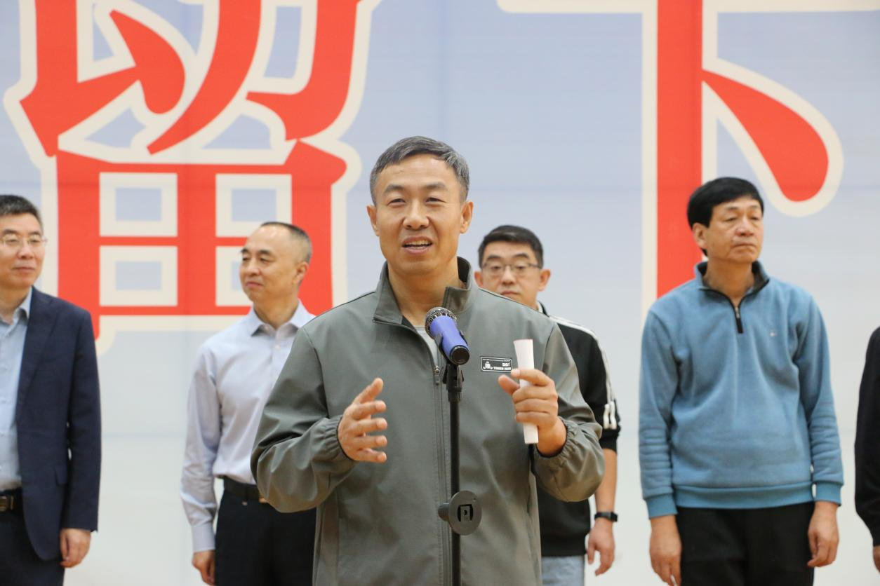 党委常委、副校长李兆祥为第一场篮球比赛开球。
