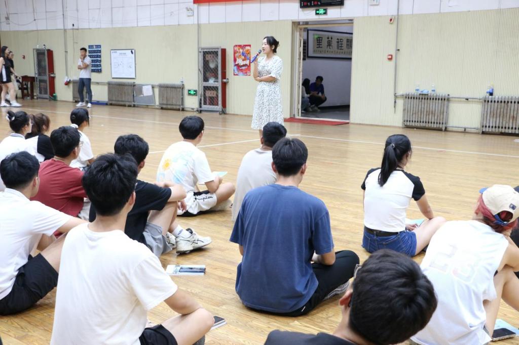 在院篮球馆举办2023级新生军训教官见面会。此次见面会由2023级辅导员唐海峰、周晗主持。