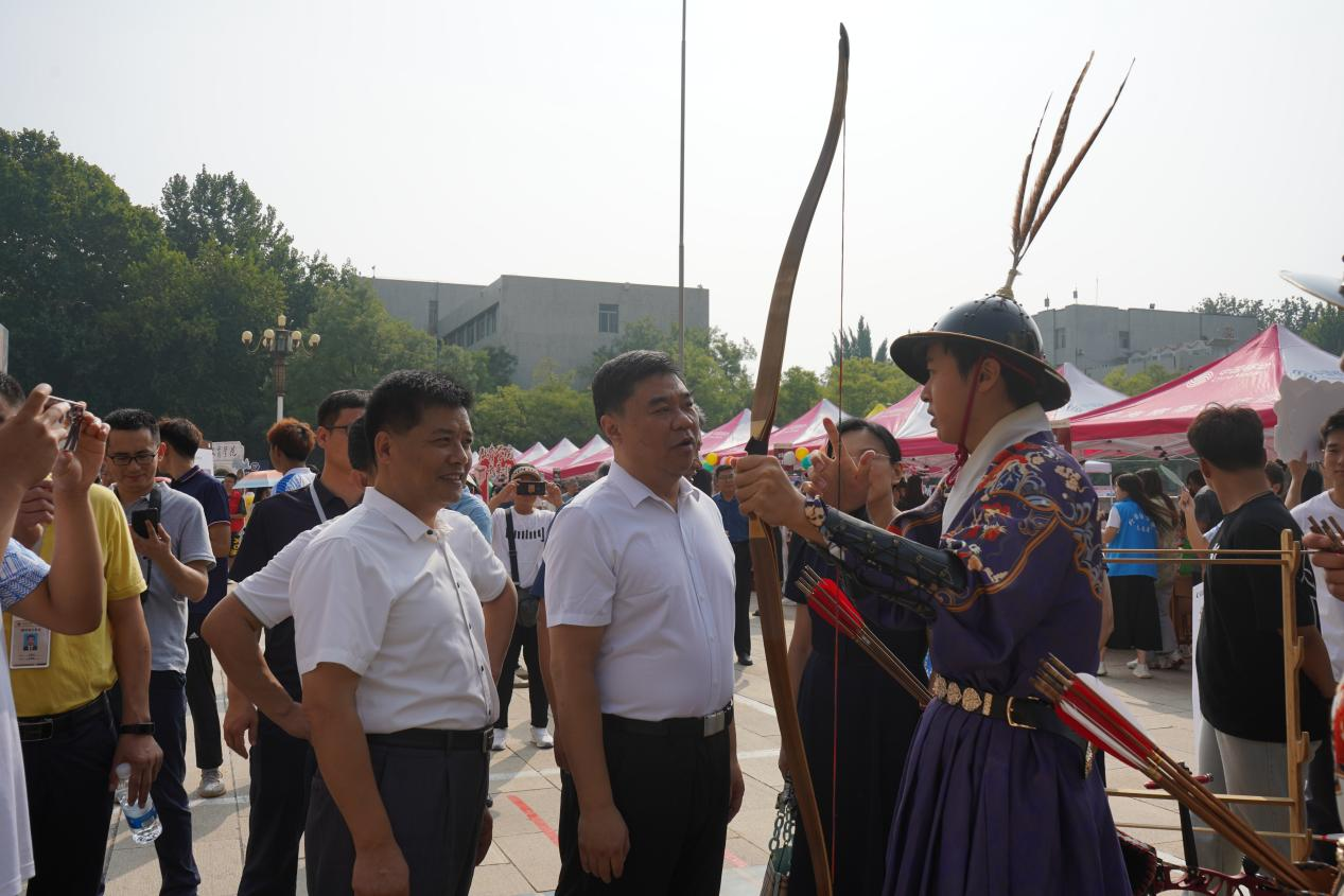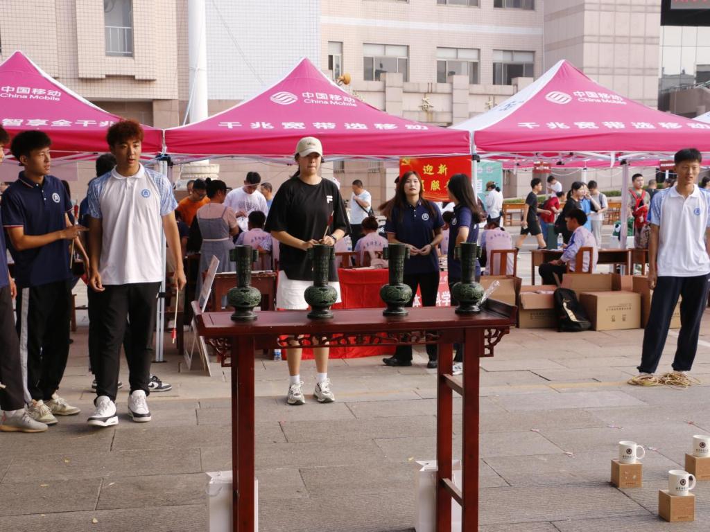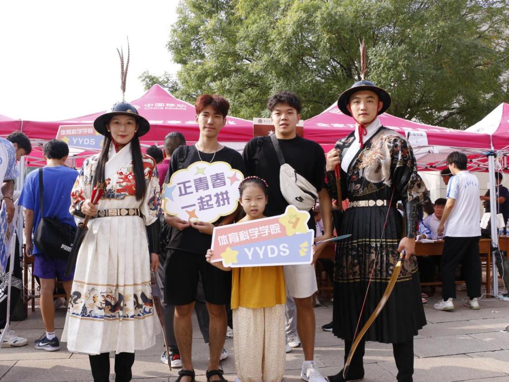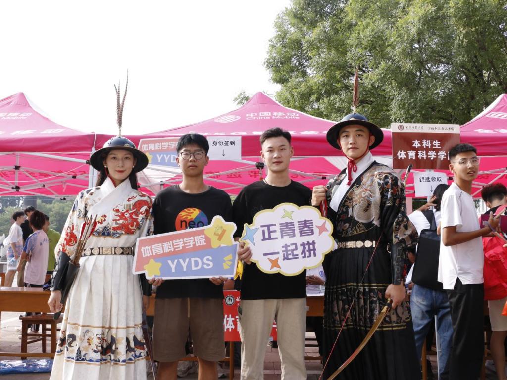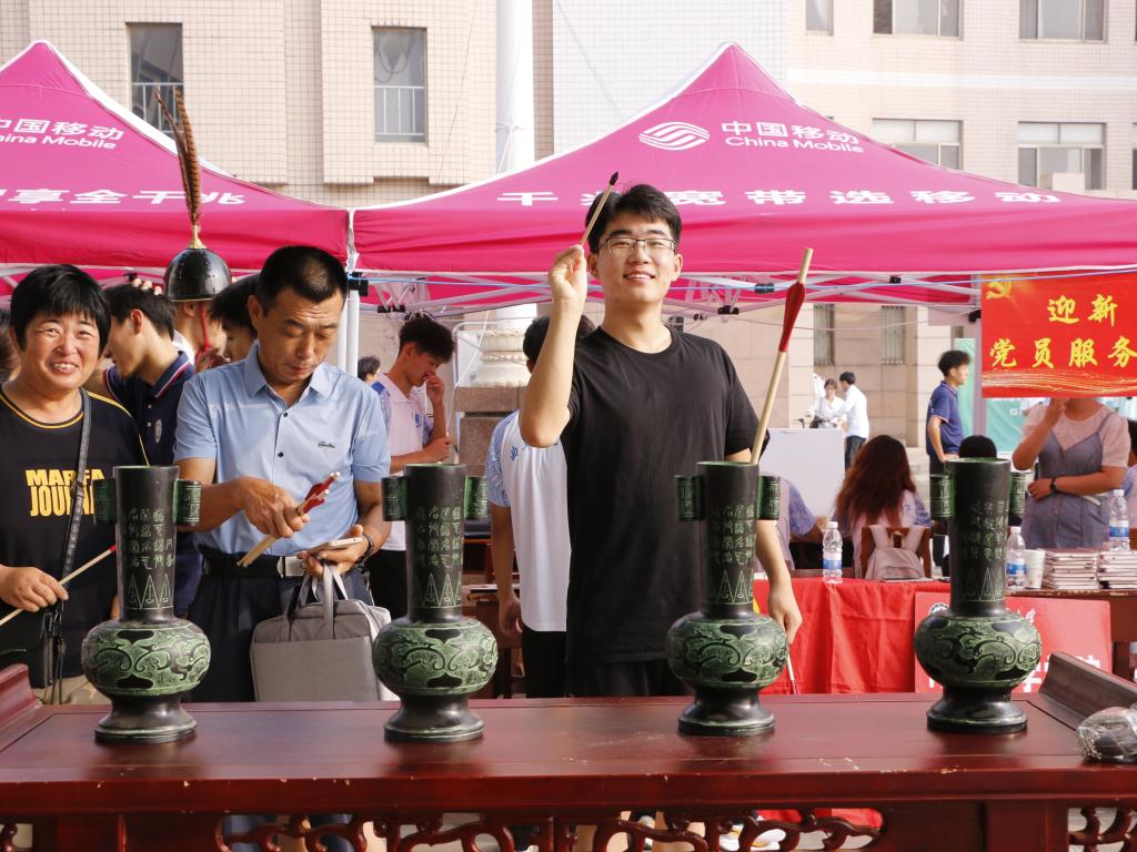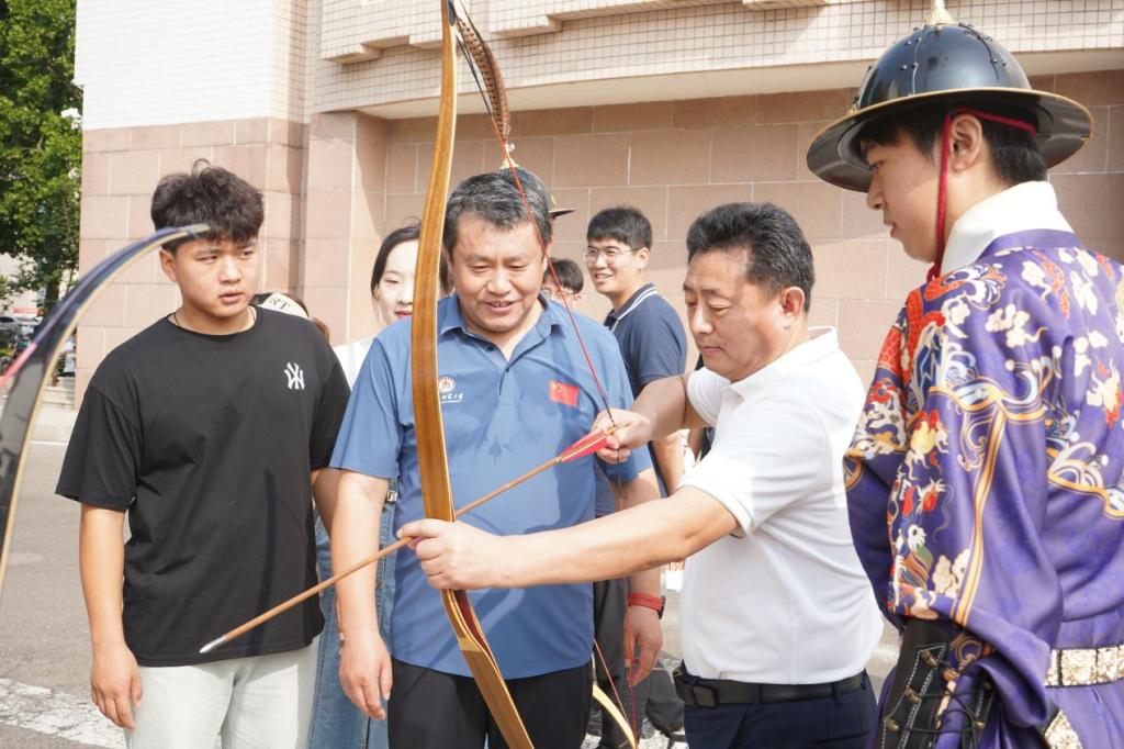 还在迎新现场设置孔子射艺展示点。一身飞鱼服,弯弓搭箭扬,现场新生跃跃欲试,争相体验射箭过程中所必备的姿态、礼仪,激发了学生学习优秀传统文化的兴趣和热情。