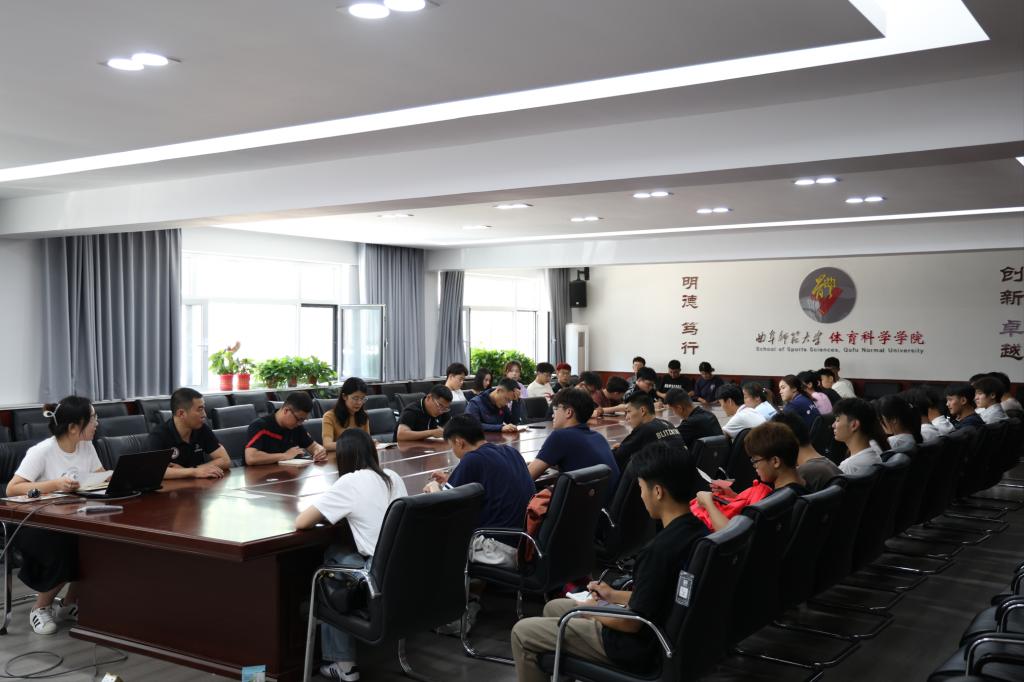一楼会议室召开第六届团委、学生会秋季学期工作会议。体育学部党委副书记马振华、辅导员唐海峰、栾永鑫、郗来军、王冰、周晗出席会议,亚洲杯决赛直播