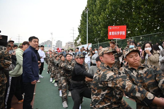 领导老师高度重视此次比赛,体育学部党委副书记马振华、辅导员唐海峰、栾永鑫、王冰、郗来军、周晗亲临现场,为参赛的队伍加油打气。
