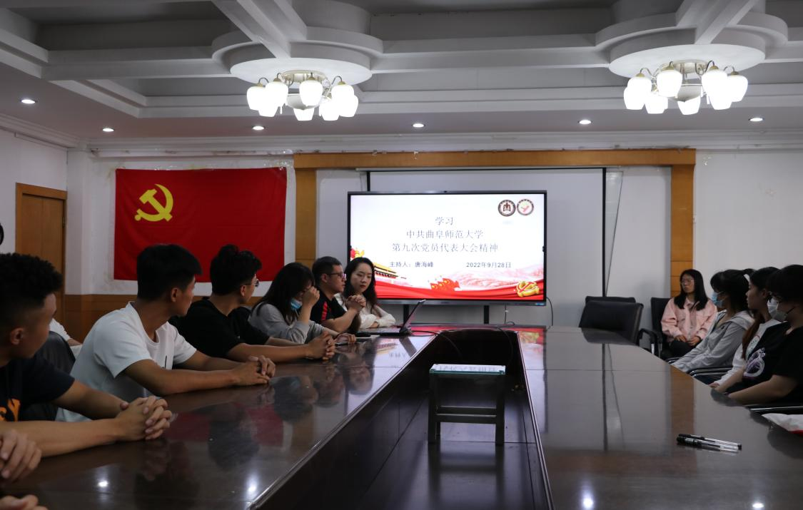 第九次党代会精神会议,会议由本科生党支部书记唐海峰老师主持。