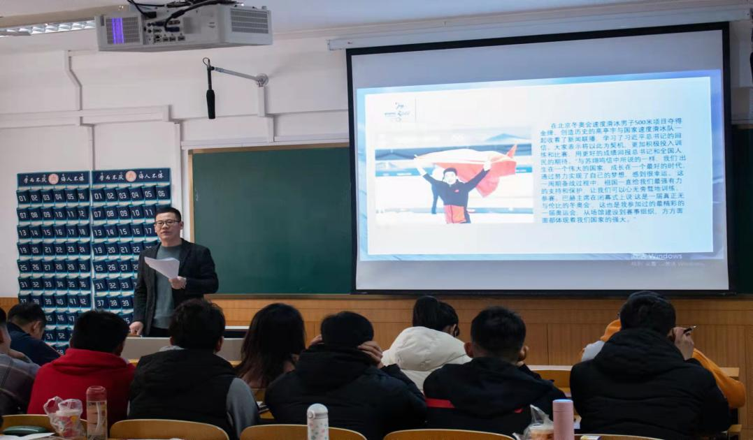 本科生党支部在系楼110教室开展了以“习近平总书记给中国冰雪健儿的回信”为主题的党日活动,本次会议由亚洲杯决赛直播