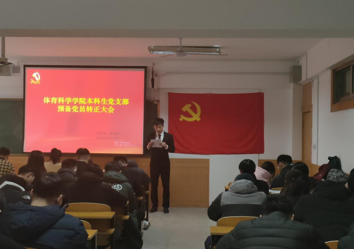 本科生党支部于系楼110教室召开了预备党员转正大会,会议讨论关于庄家豪等四人是否接收为正式党员的议题。本次会议由党支部书记唐海峰主持,党委副书记马振华微莅临指导,学生支部全体党员参加。