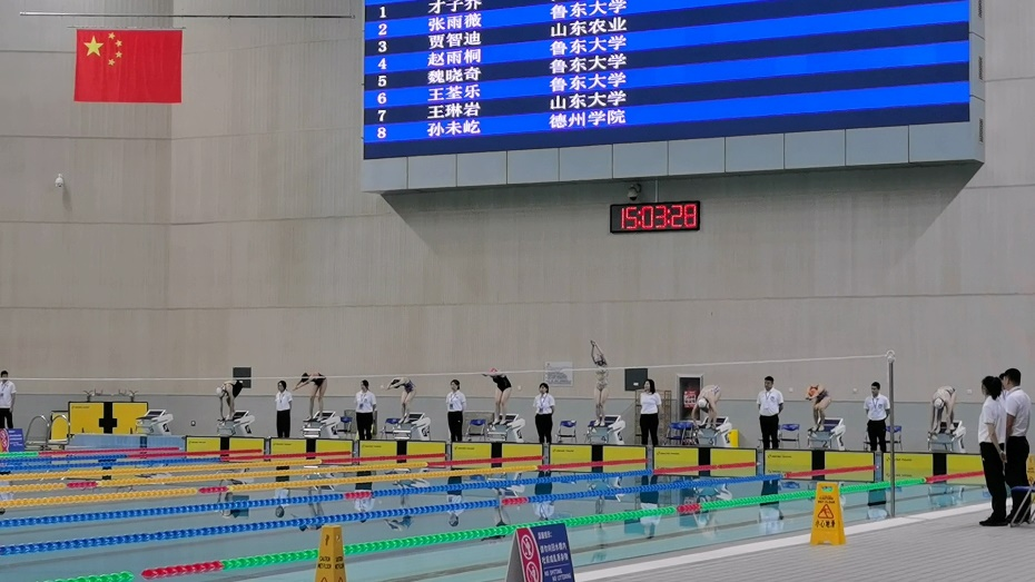 11月26日-28日,由山东省教育厅、山东省体育局主办的山东省第十六届大学生运动会游泳比赛在青岛国信游泳馆举行。本次比赛共吸引了山东省15所高校,31支代表队,近150名运动员参赛,是山东省大学生规模最大、竞技水平最高的游泳比赛盛会。