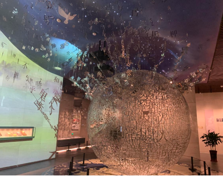 走进博物馆,序厅环幕投影以“天不生仲尼,万古如长夜”短片为师生们开启了追溯历史长河之旅。厅内圆形的书筒墙上装满了各种儒家典籍,恢弘壮观。历史文化与现代科技交互融合,给每一位观众带来了心灵的震撼。
