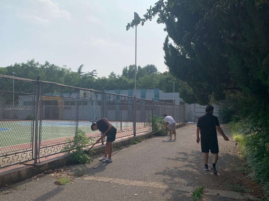 仅仅一上午的时间,在老师同学们的努力下,满地的杂草落叶被清扫干净,院系楼前又再次焕发光彩,恢复了往昔的模样,迎接每一位归来的学子。