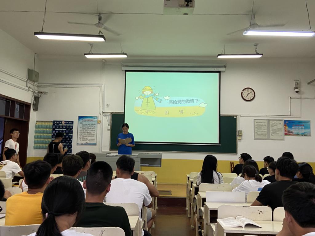随后各个班级组织了微情书朗诵,每位学生朗诵给党的书信,通过自己与党的故事或党对自己的教育引导,表达自己对党的热爱,对党美好明天的祝福以及党的建设贡献自己力量的决心,这项活动抒发了对党和国家的热爱。