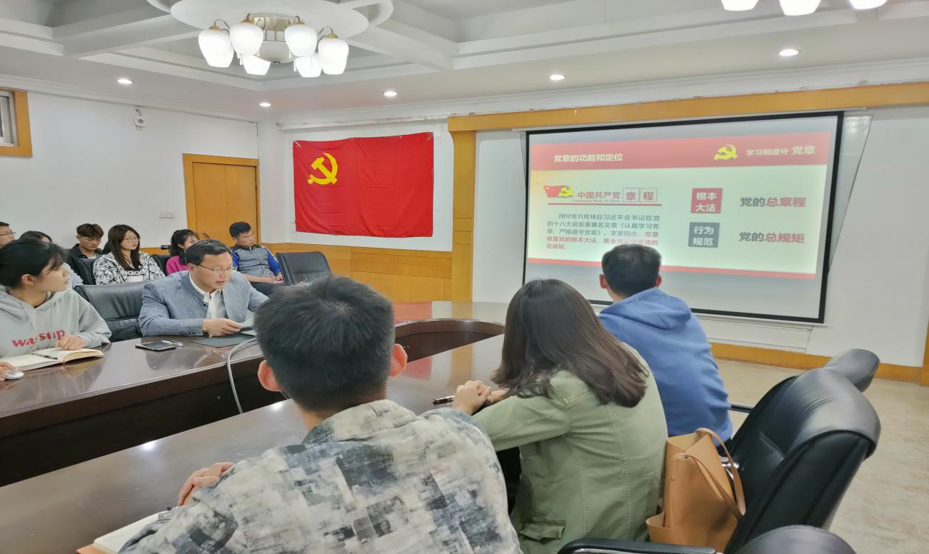 党委副书记展利民为本科生党支部讲授专题党课,本次党课主题为学习中国共产党章程。