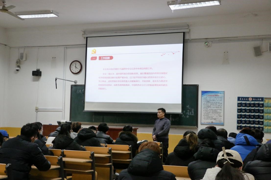 刘书记从学习贯彻十九届五中全会精神的重要性出发,分别让学生了解第十四个五年规划和二〇三五年远景目标的内容,领会大会精神。同时从学生的角度讲解“十四五”规划与青年息息相关的事例,鼓励大家争做新时代优秀青年。
