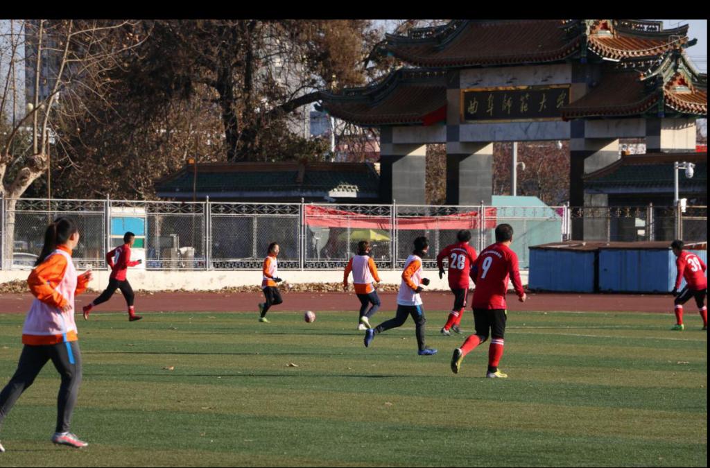 女子足球队与山东德沐德律师事务所足球俱乐部在南操场举行足球友谊交流赛。亚洲杯决赛直播