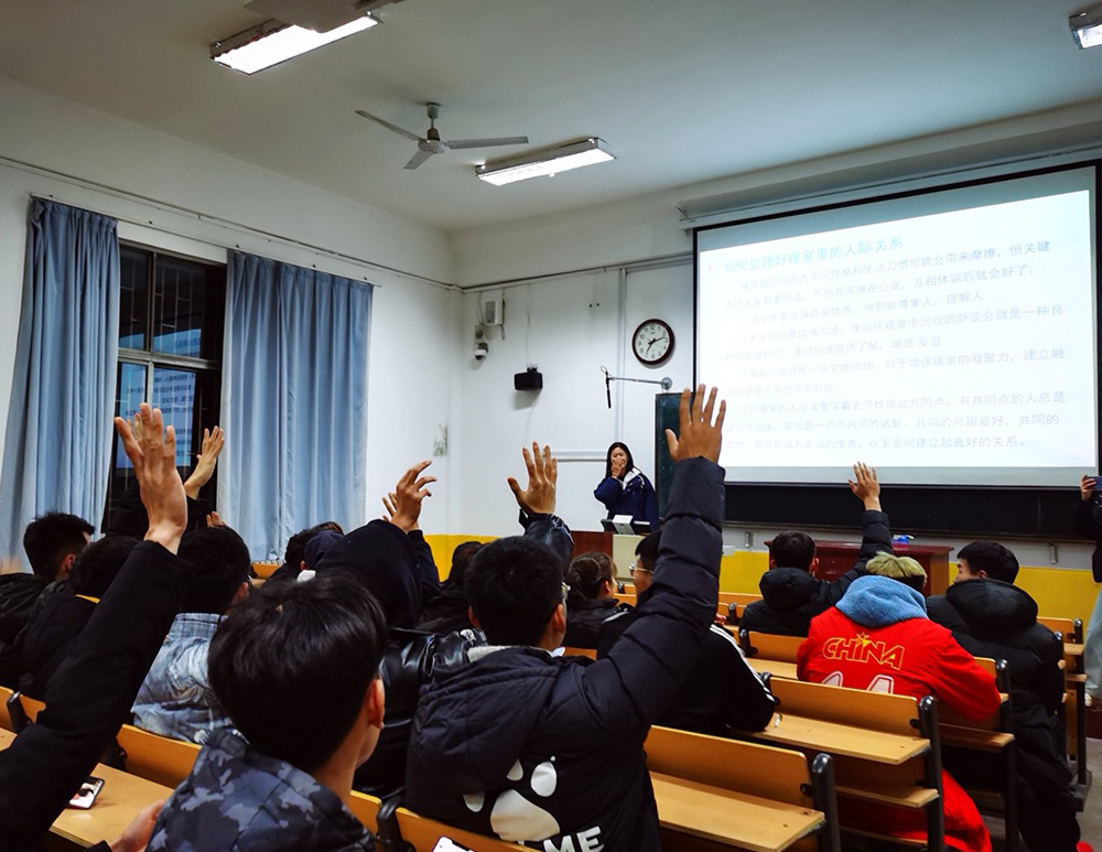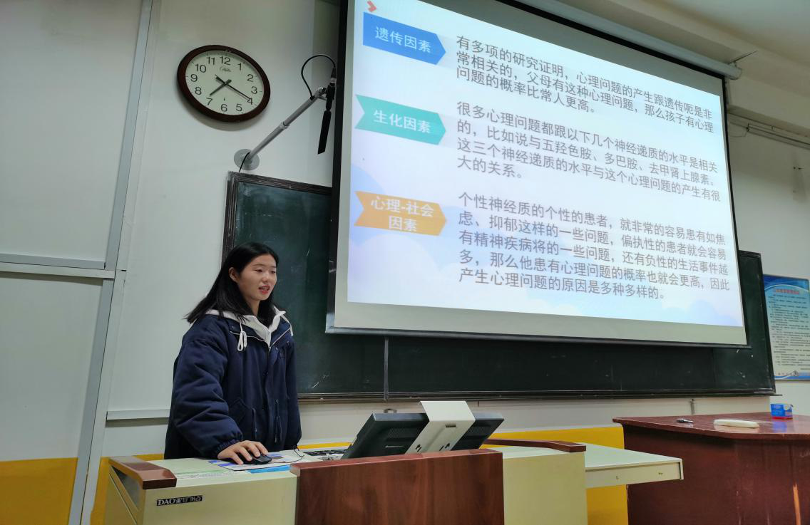 首先,主讲人针对心理健康问题对大学生产生心理压力的来源、心态调整的方法及对大学生人生发展起到的决定性作用等几个方面进行了详细的讲解。