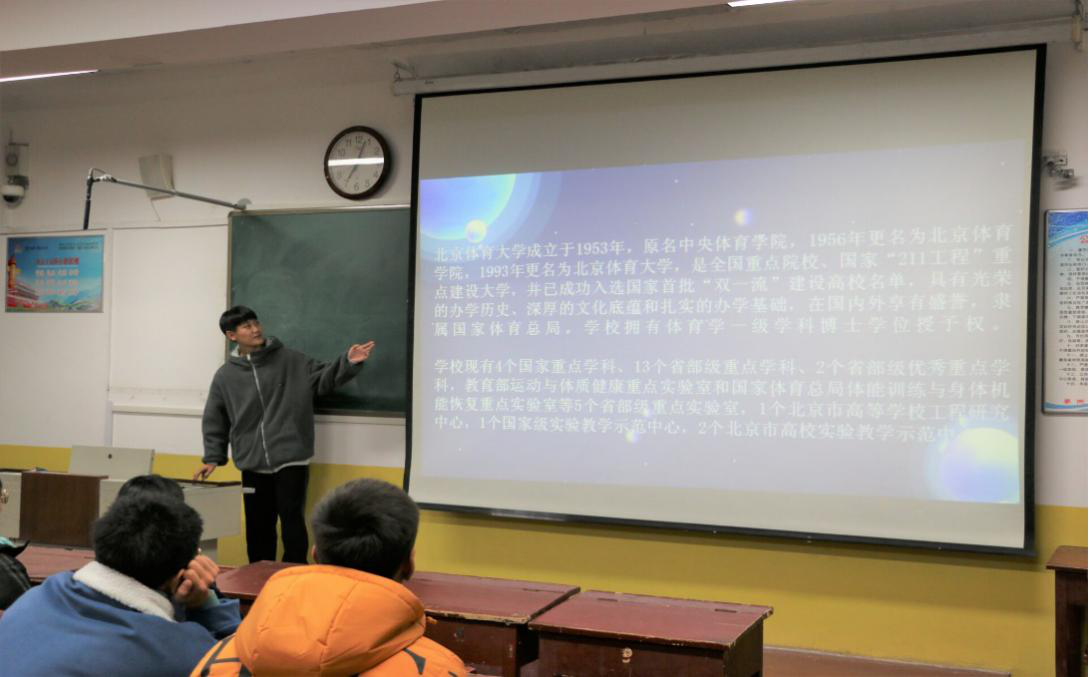 交流会开始,赵微同学按照2020年最新考研院校排名,从考研院校排名,各院校简介,参考书目,复试分数线,招生人数等方面详细地与大家展开分析交流,如北京体育大学、上海体育亚洲杯决赛直播