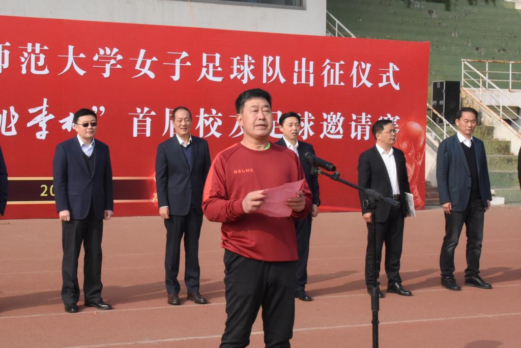 副校长胡钦晓在仪式上致辞。他表示,女足队员在多项赛事中取得了可喜成绩,是曲园绽放的“铿锵玫瑰”,希望大家继续秉承“勤奋、朴实、团结、进取”的校风,坚决扛起鲁能体育“百折不挠、忠诚报国、精诚团结、永攀高峰”的精神大旗,面对挑战无惧无畏,面对挫折永不言败,在赛场上顽强拼搏,奋勇争先,绽放自己的青春梦想,展现曲园的青春力量,以优异的成绩回报山东鲁能泰山足球俱乐部的信任与支持,为曲园增光添彩。