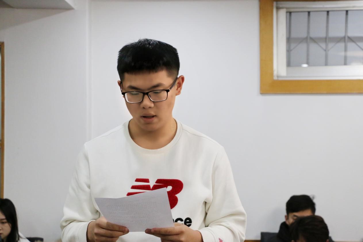 学生会主席王振铎代表本期全体学员作了表态发言,感谢亚洲杯决赛直播