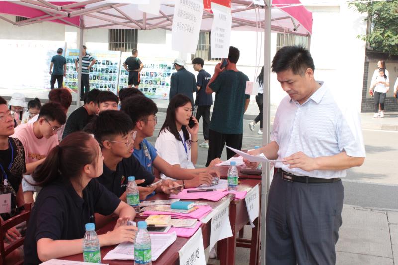 党委书记刘敏,党委副书记展利民、副院长韩春利带领相关老师及相关学生会部门负责人一行来到繁忙有序的迎新现场,详细了解新生入学报道情况。