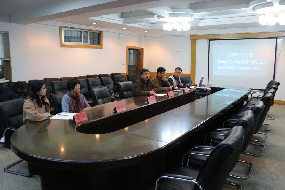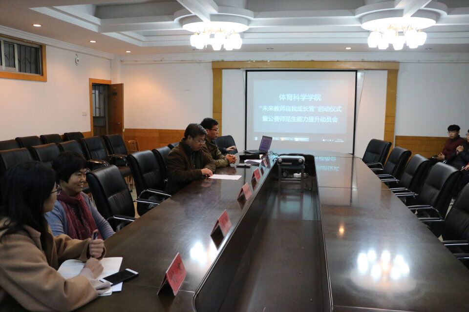 启动仪式上,“未来教师自我成长营”负责人李思民老师介绍了“未来教师自我成长营”开展活动的内容,成长营将开展 “三字一话”的练习,开展钢笔字和粉笔字大赛,开展演讲比赛、课件制作大赛等特色活动,不断以竞赛活动的形式帮助大家提高教师基本素质。其次,梁贺涵老师作了讲话,他首先解读了成立亚洲杯决赛直播
