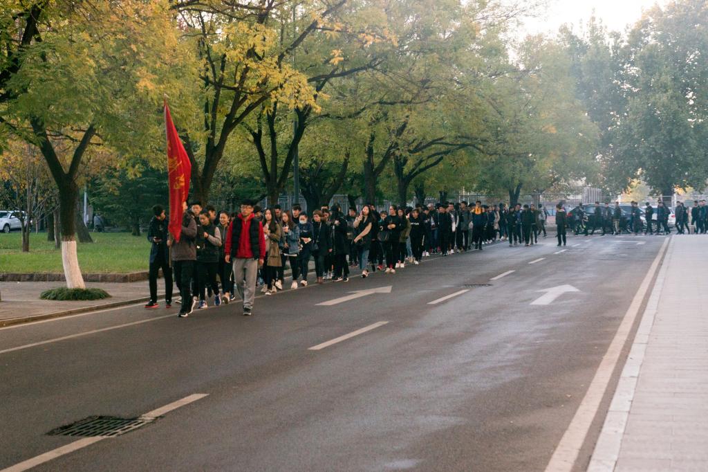 团委学生会组织新生进行游三孔活动,参加本次的主要成员有辅导员梁贺涵老师,团委副书记张庆义,学生会全体成员及2017级全体同学等。
