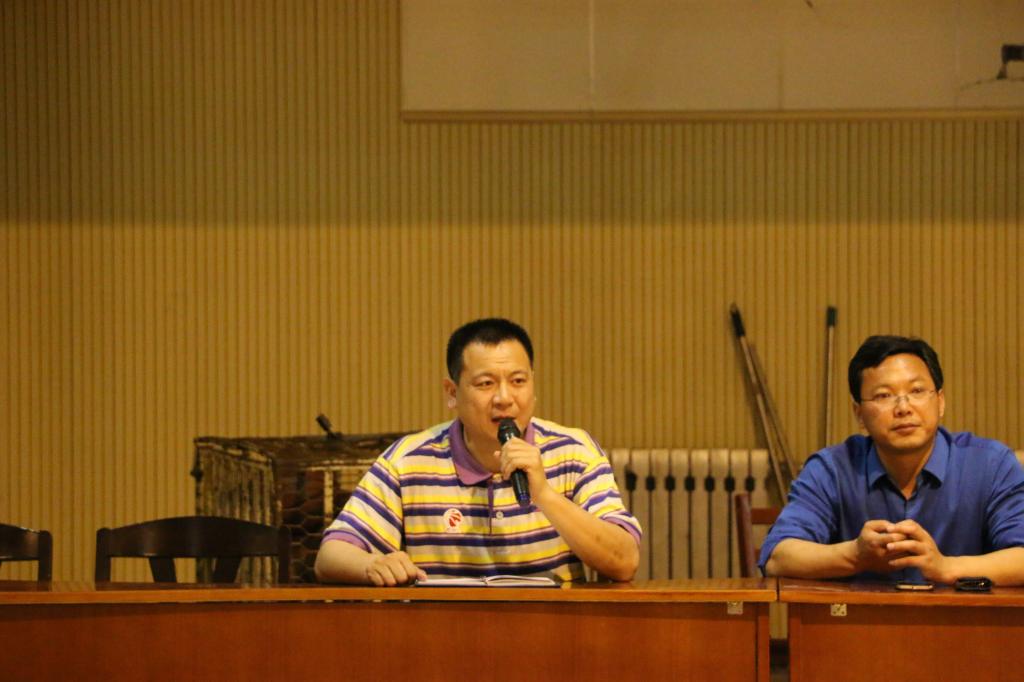 会议开始时,赵峰老师发表讲话,向大家介绍了会议内容与目的。紧接着,展利民老师就会议内容做了进一步讲解。展利民老师向同学们传达了亚洲杯决赛直播