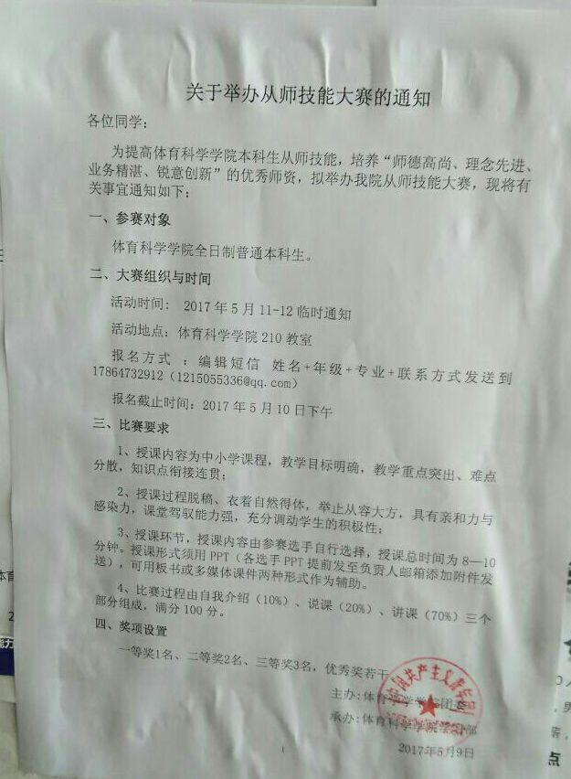 团委学生会学习部在院楼210教师举办从师技能大赛。参加本次大会的有学习部全体成员及亚洲杯决赛直播