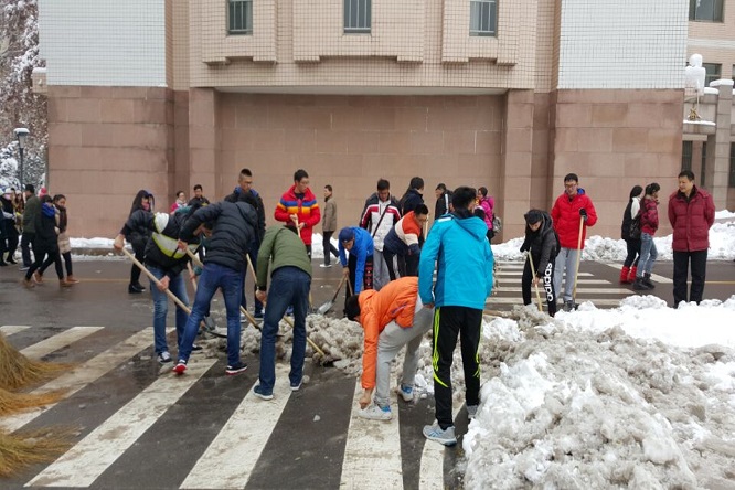 看到干净宽敞的路面,尽管严寒依旧,但师生们的心却温暖起来。同学们纷纷表示,和老师们一起出来除雪,不仅仅是为老师同学们提供方便,也拉近了我们和老师们的距离,感觉很亲切。