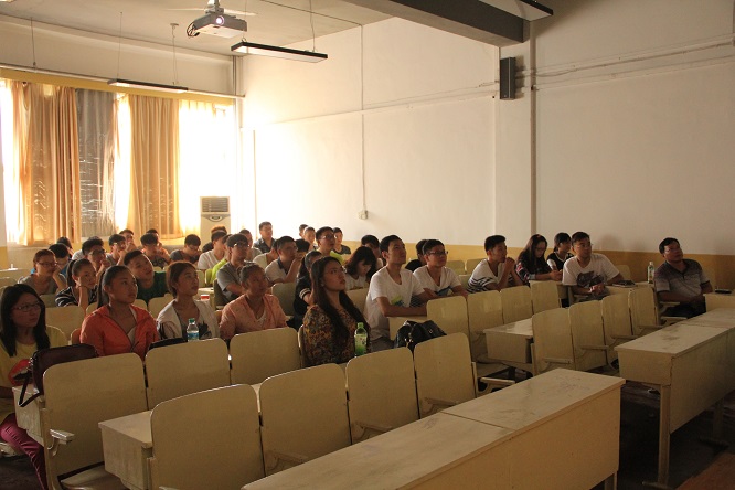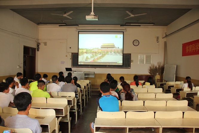部分学生在209教室,观看纪念抗日战争胜利及世界反法西斯战争胜利70周年阅兵仪式,共同感受祖国母亲强大的国威。