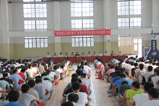 在篮球馆举行期末考试学生动员大会,出席本次大会的有亚洲杯决赛直播