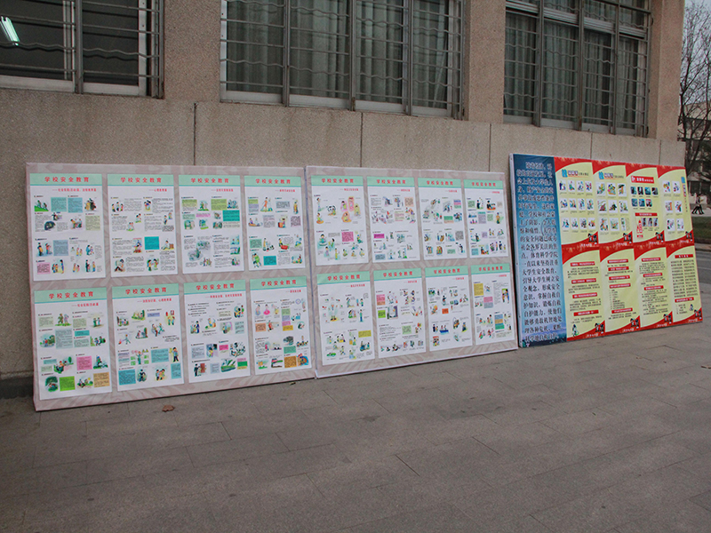 制作安全教育宣传板进行安全教育宣传,宣传板内容涵盖大学生学习生活的多个方面,涉及到安全教育的多个领域,包括网络安全、社会实践安全、心理教育、法制教育、消防知识普及、自然灾害自救知识、游泳安全、体育活动安全、食品卫生安全、交通安全等。