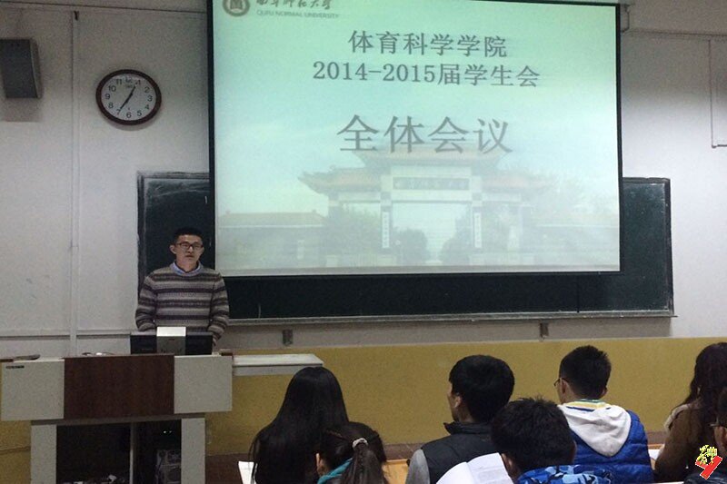 2014-2015届学生会全体成员于院楼202教室召开会议。参加本次会议的有学生会主席团全体成员以及各部部长。本次会议由学生会主席孙业飞同学主持召开。