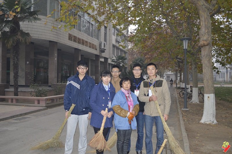 团总支宣传部全体成员及志愿者在院楼前集合,开展冬日送温暖的活动,本次活动主要是帮助校园环卫工人打扫卫生,清理校园的落叶和杂物。