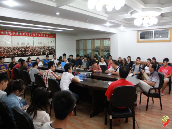于院一楼会议室召开迎新工作部署大会,院党总支副书记展利民、团总支书记赵峰,辅导员李娜、王军以及学生会全体干部参加了本次会议。