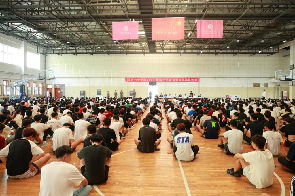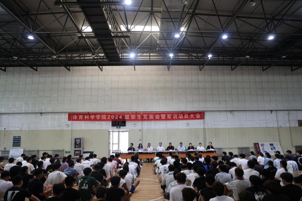 于篮球馆举办2024级新生见面会暨军训动员大会。体育学部党委书记许怀祥,体育学部主任、亚洲杯决赛直播