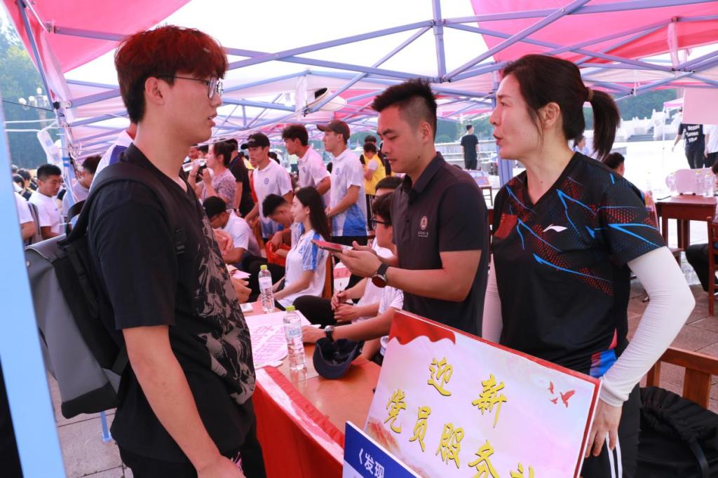 教工党支部党员便积极投入于迎新工作中,通过在迎新现场设置的教工党员迎新工作站,为新生答疑解惑,主动与新生和家长面对面交流,耐心解答家长和同学们的问题,确保亚洲杯决赛直播