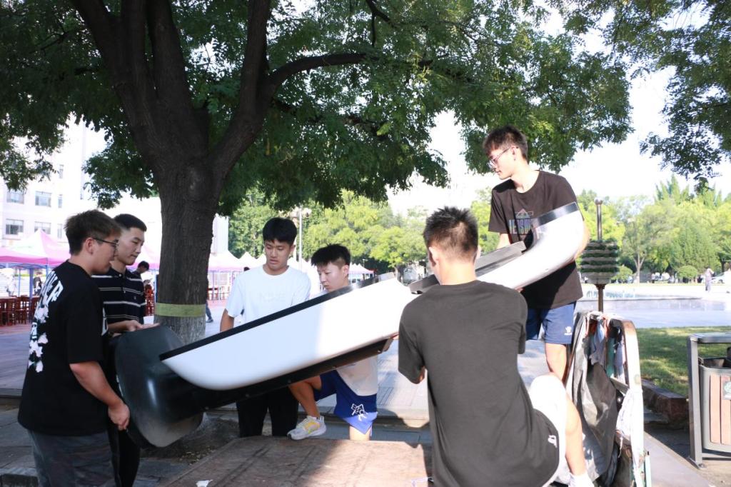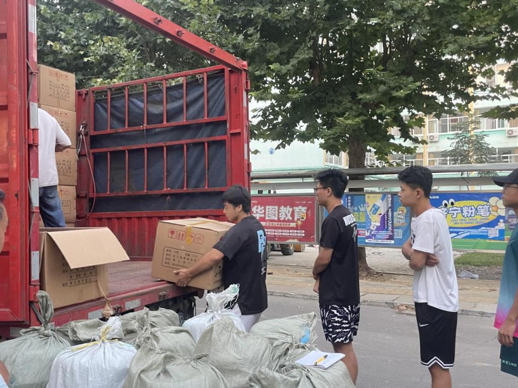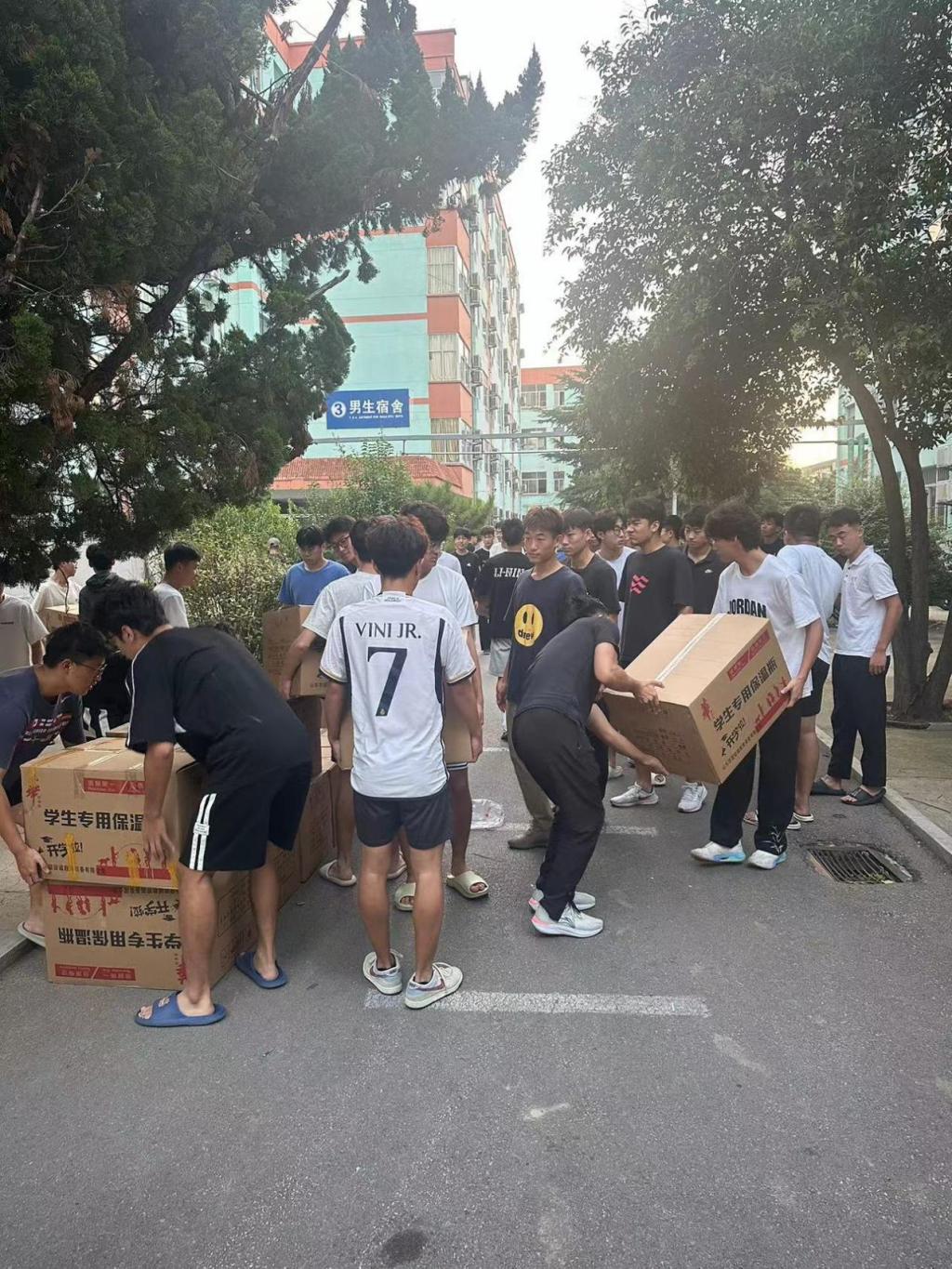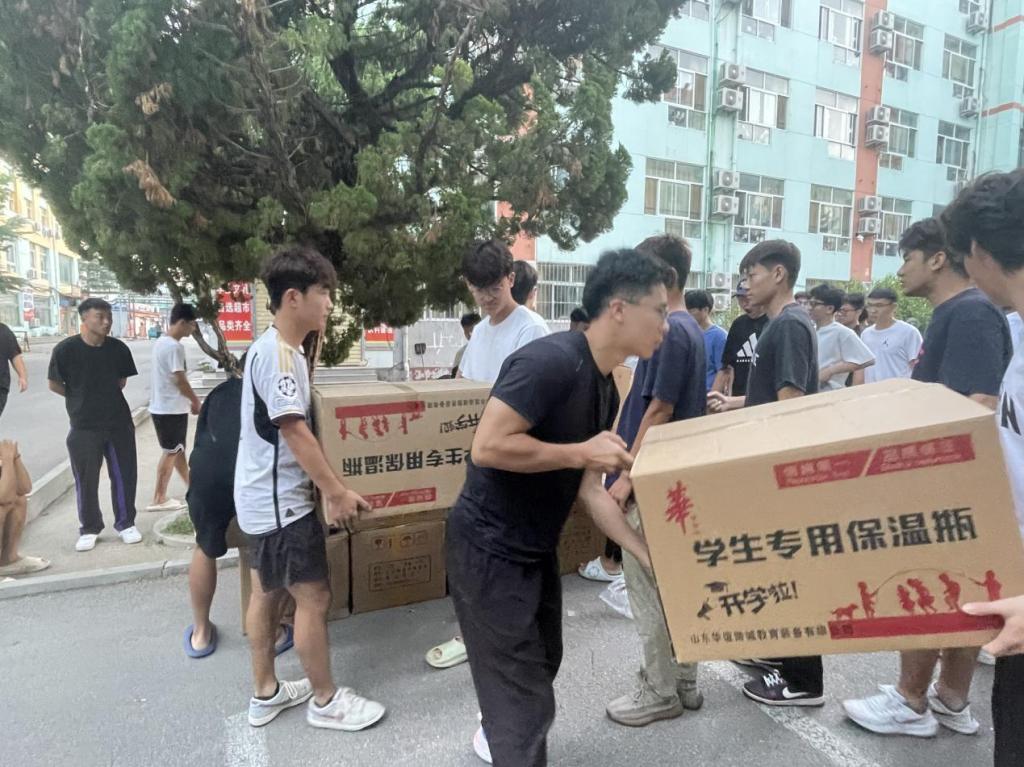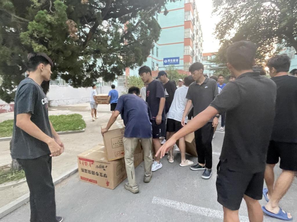 第七届团委、学生会成员们先后帮助新同学将床铺、被褥、暖瓶等生活用品领取完成,并分发至各个宿舍。