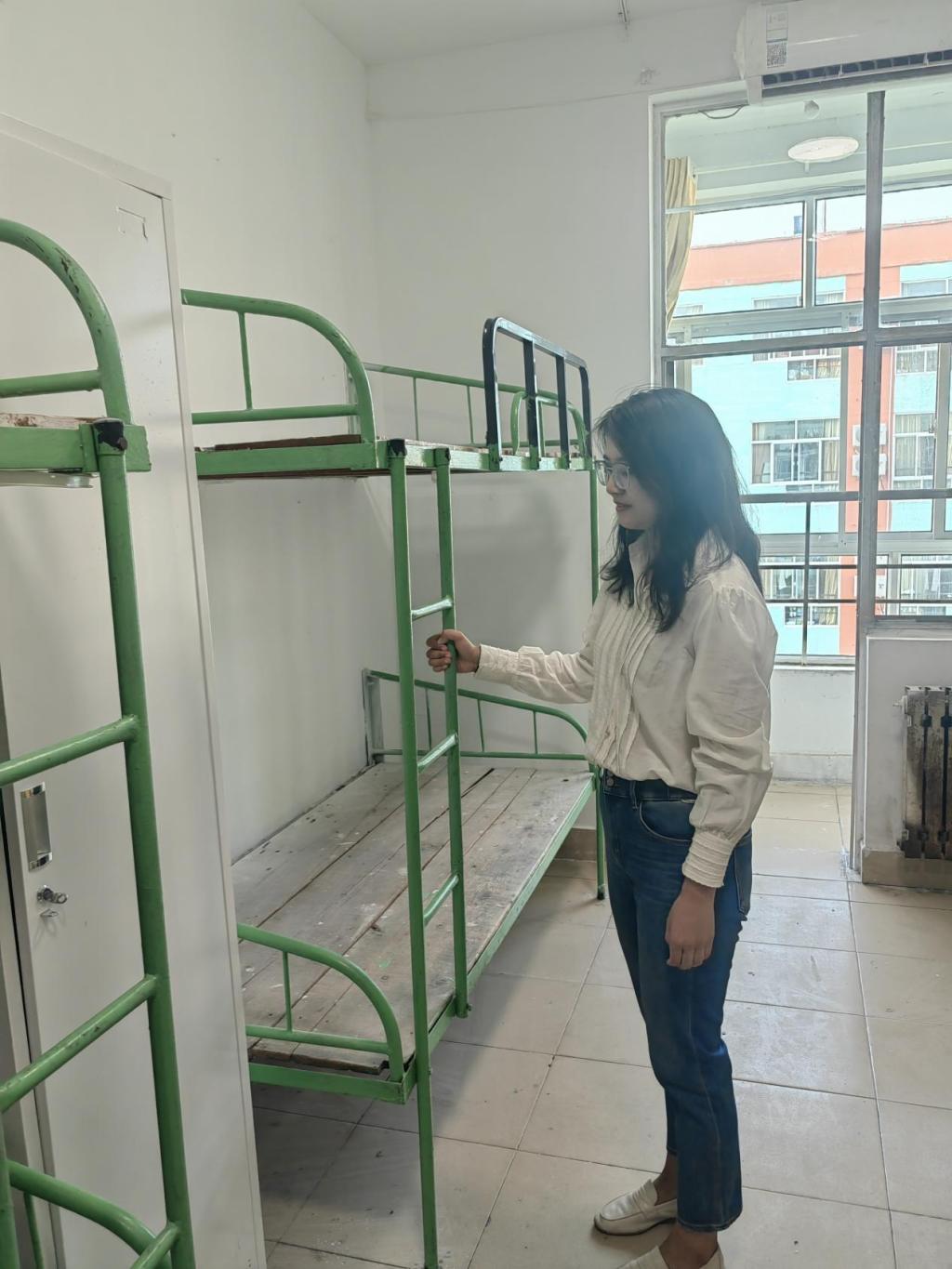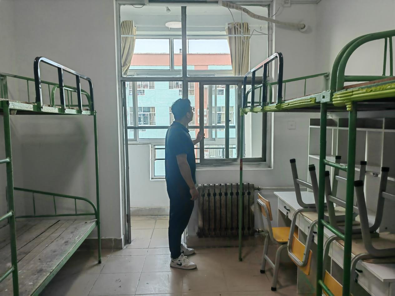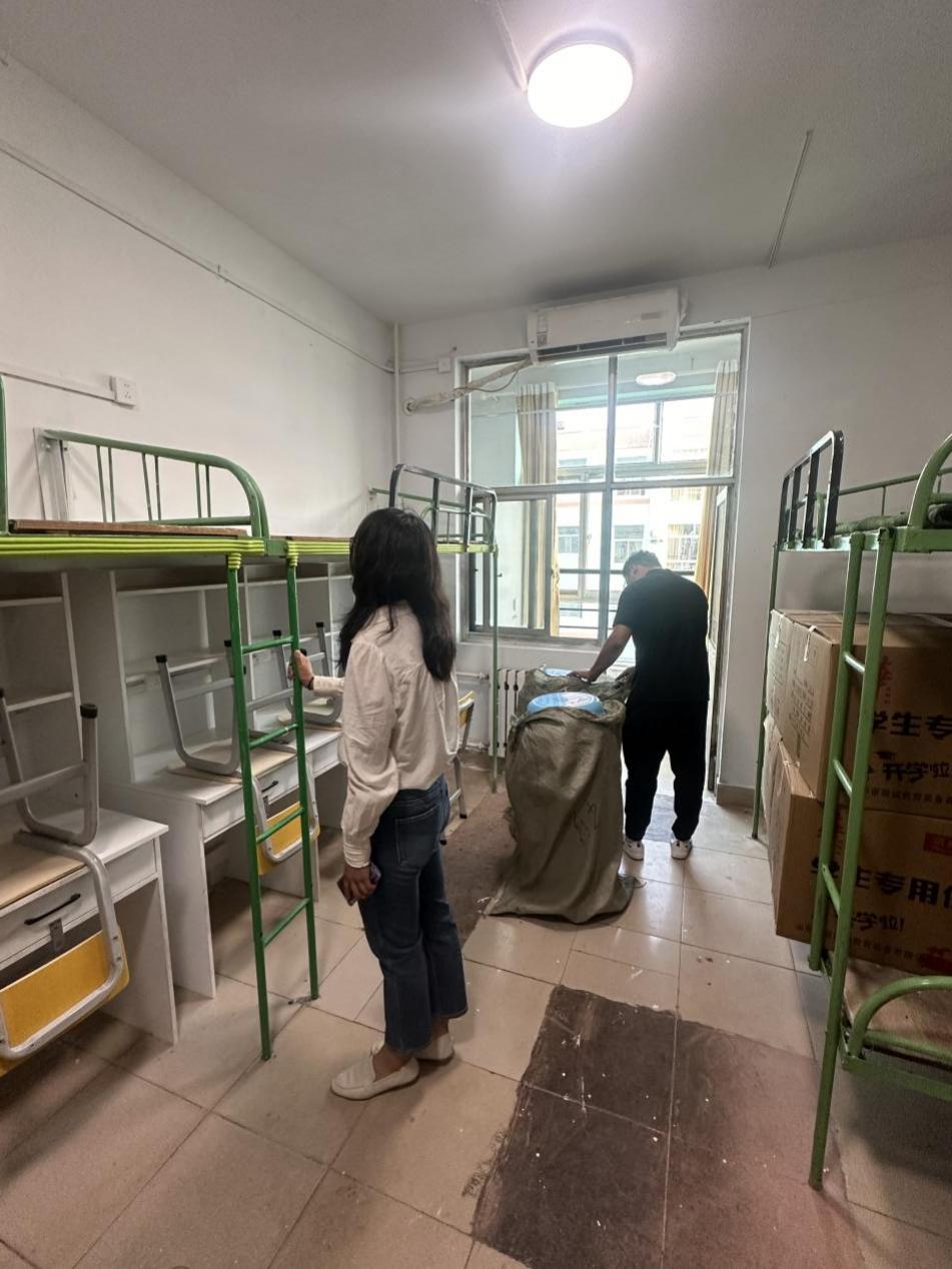 2024级辅导员刘京、郗来军提前走访新生宿舍,对新生宿舍的安全隐患、卫生情况、设施条件等进行全面摸排。