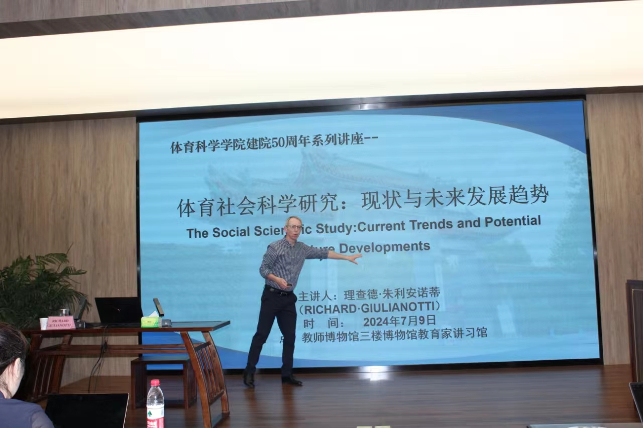 院士、英国皇家艺术学会院士、联合国教科文组织体育和教育促进发展主席理查德·朱利安诺蒂教授在教师博物馆教育家讲习馆做了题为《体育社会科学研究:现状与未来发展趋势》的学术讲座,讲座由亚洲杯决赛直播