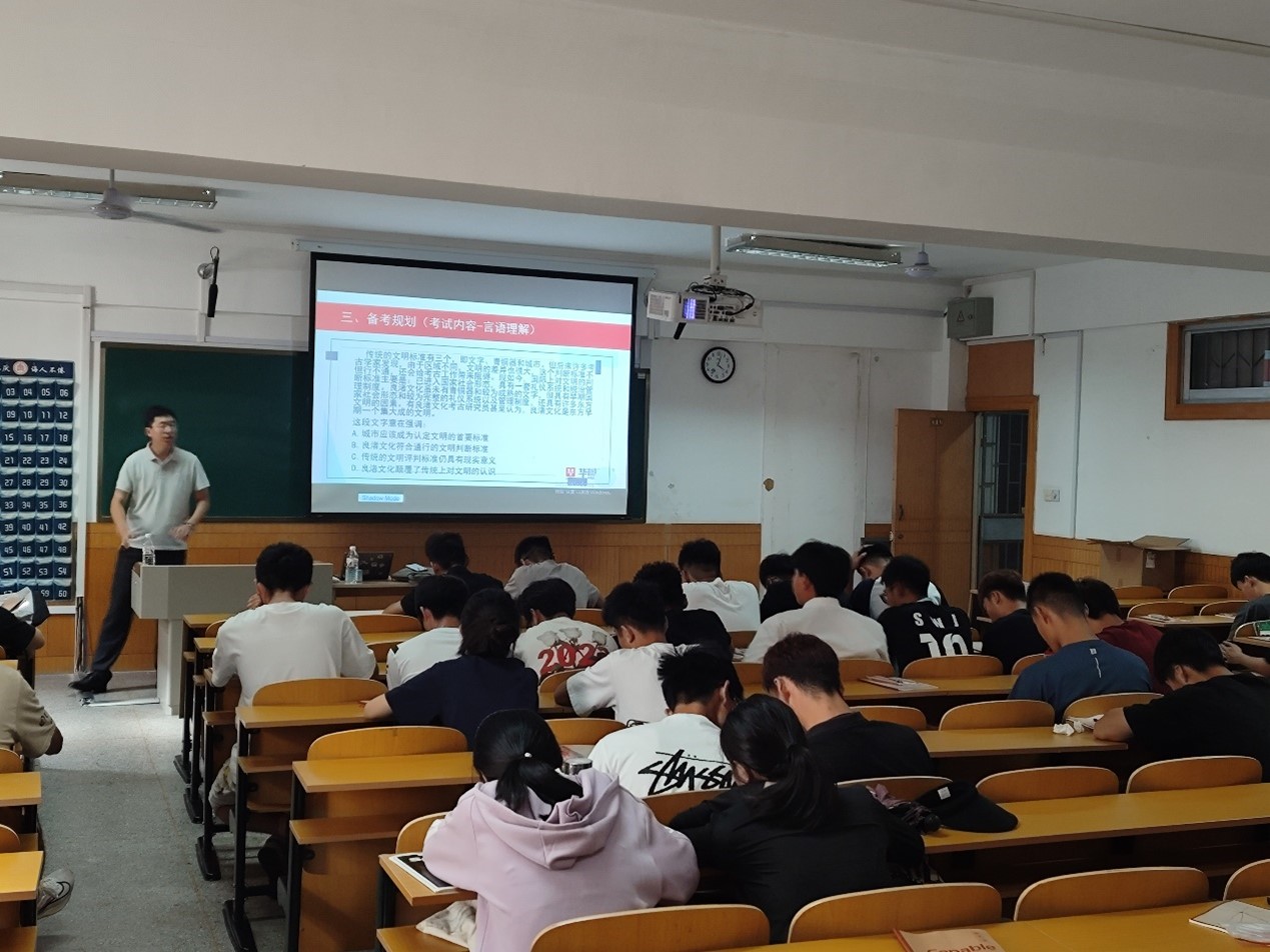 会上,张老师用真实有效的数据为大家呈现了国考省考的相关形式,并从公务员考试笔试内容入手,为大家介绍了公务员考试相关题型,分值分布,做题时间的参考等,也同步展示了相关真题,引导同学们在备考过程中要规范良好的做题习惯,也从侧面反映了公考备考环节的重要性,使计划参加公考的同学们在备考环节的针对性有所提高。