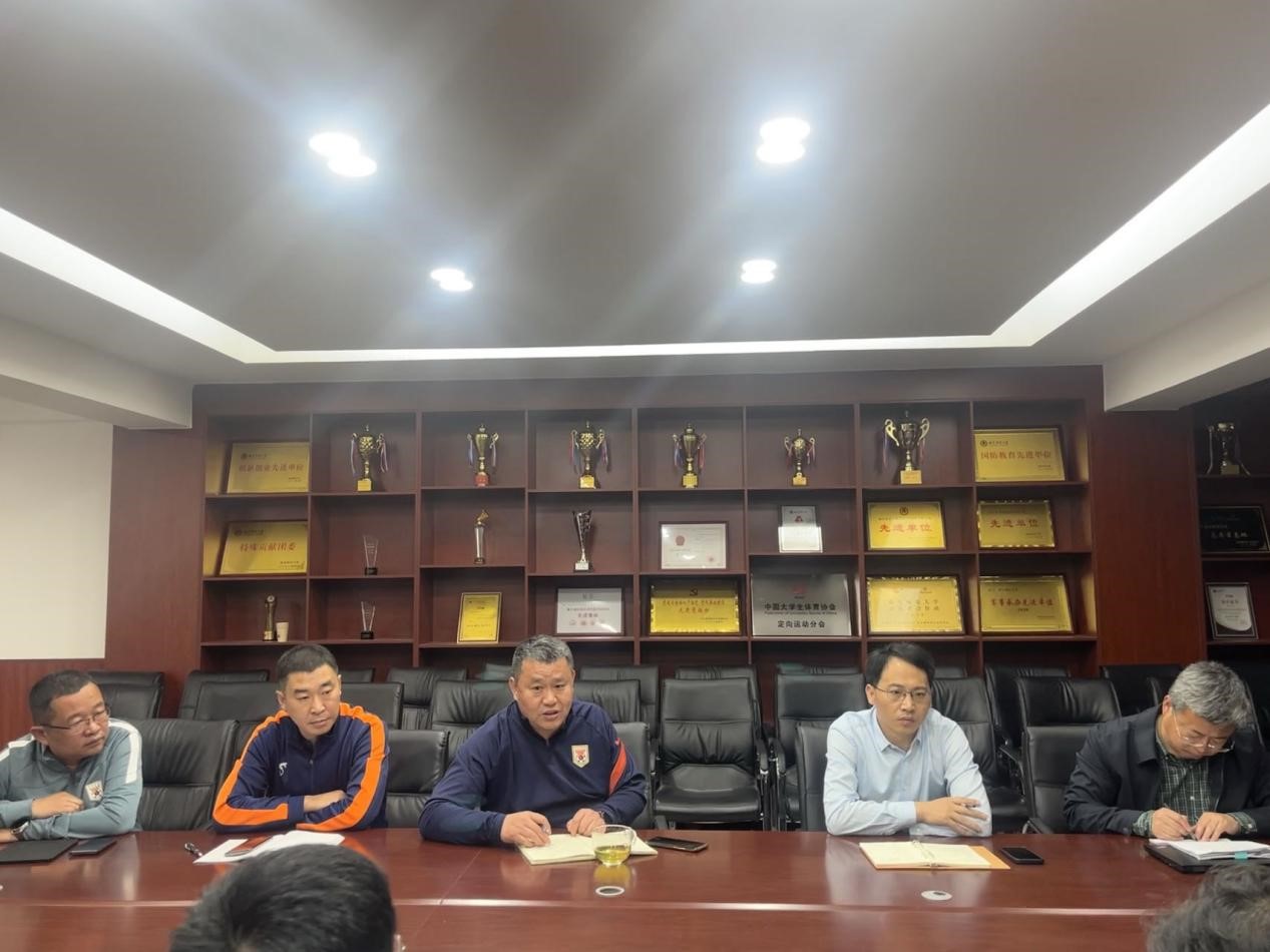 办公室副主任鞠海彦一行莅临体育学部调研指导。体育学部党委书记许怀祥,体育学部主任兼亚洲杯决赛直播