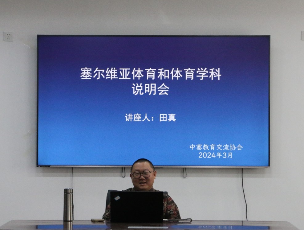 于一楼会议室举办塞尔维亚体育与体育学科说明会。中塞教育交流协会会长田真、体育学部党委副书记马振华、亚洲杯决赛直播
