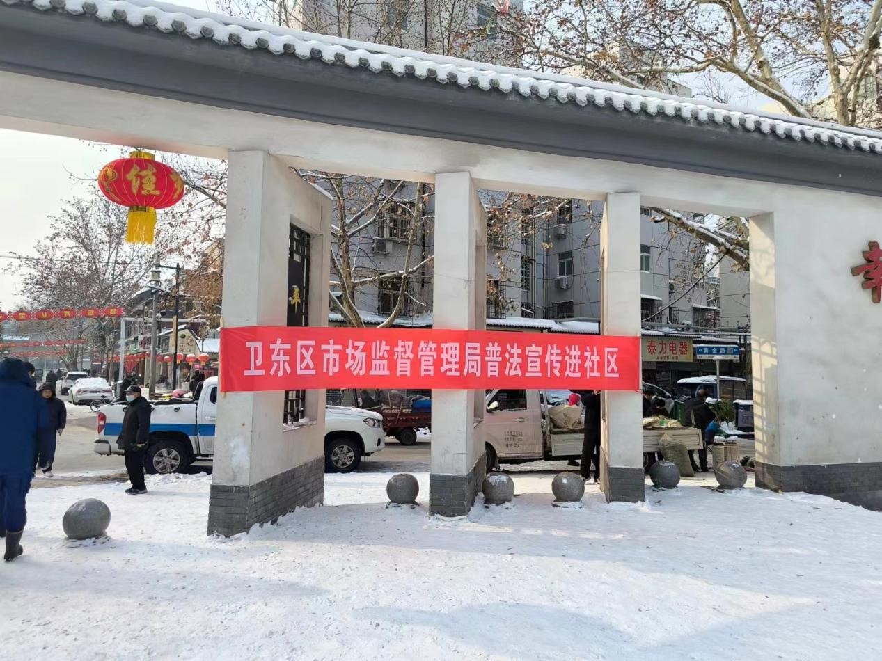 在宣传现场实践队员在场地上布置了活动横幅、宣传展板、设立了法治宣传咨询台,在现场还向社区居民发放新春了“法治年货”大礼包(春联、围裙、环保袋、普法宣传资料等),主要宣传了新修订的行政复议法、老年防诈骗、预防价格欺诈、散煤禁烧令等与群众生活密切相关的法律法规。展板前,法律志愿者仔细讲解法律知识;咨询台前,市场监管执法人员对群众的询问和法律需求现场“开方”,耐心解答。