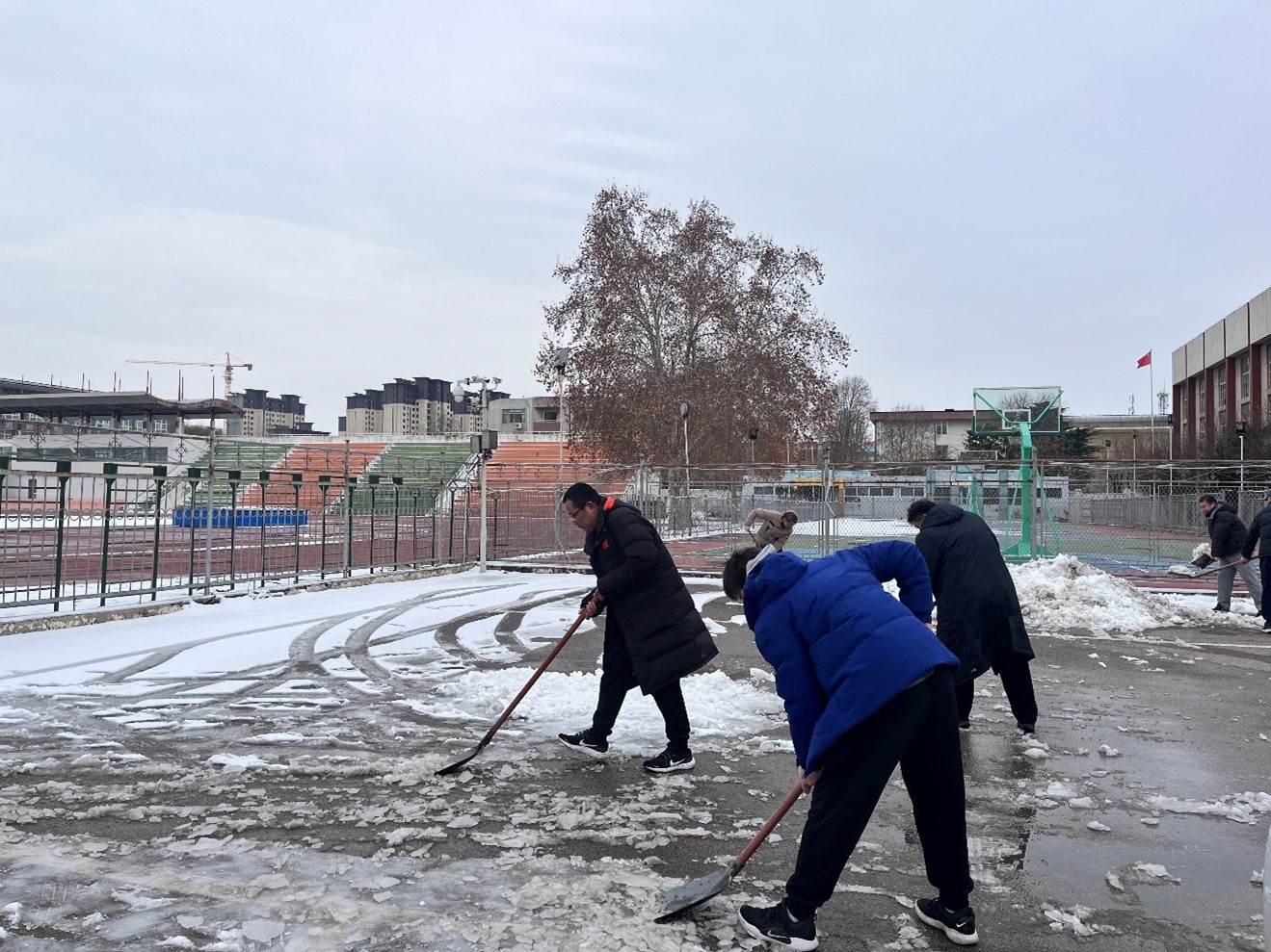 通过此次的积雪清扫工作,不仅为广大师生营造了一个安全出行的环境,也让大家感受到了亚洲杯决赛直播