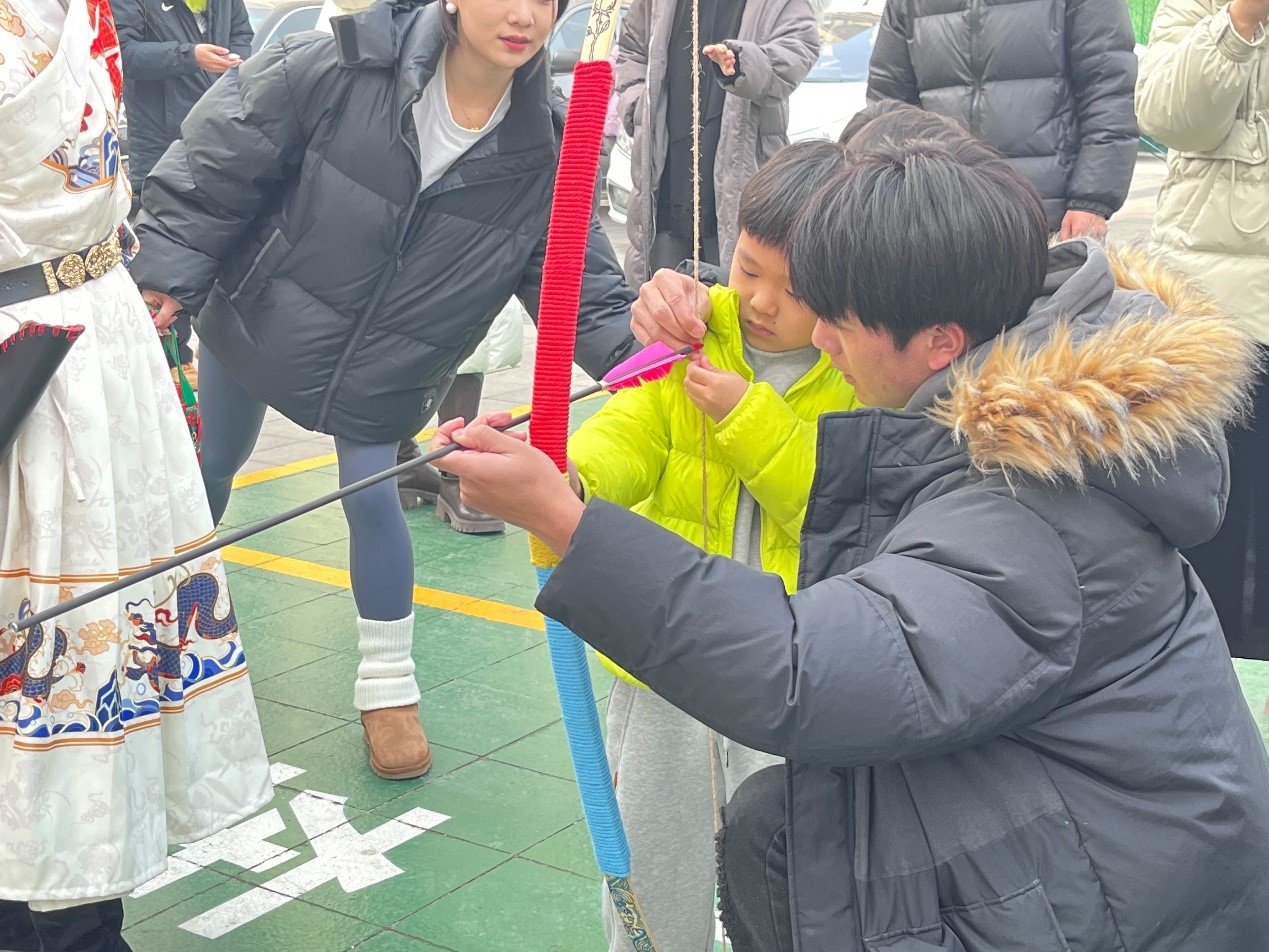 “以青春之力,践社区之行”寒假社会实践队来到曲阜市小雪街道如意社区。为了更好的让孩子们学习,掌握射艺,对中华民族的古老文化感兴趣,实践队员们亲自对社区的小朋友们进行了射艺知识的详细讲解,并对孩子们进行示范,带领孩子们制作弓箭和箭矢,培养孩子们动手能力的同时也帮助小朋友们更好的学习和理解射艺知识。实践队员还教授小朋友们射箭的动作要领和射箭的注意事项,让孩子们亲身实践和感受射箭的过程,对于动作不标准的孩子们,实践队员们也进行了耐心的指导,同时实践队员们也会对力量不足的孩子们进行辅助。箭矢的瞄准,手指勾弦的要领和拉弓的姿势这些内容在小朋友们亲身感受过之后更容易产生深刻的印象,实践队员们细心指导孩子们进行学习,将中国古老射艺的魅力展示的淋漓尽致。