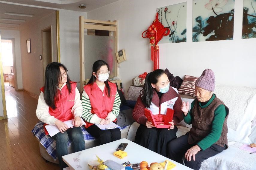 通过前期的信息整理,实践成员得知如意社区内居住着许多优秀老党员。在我们党矢志践行初心使命、筚路蓝缕奠基立业、创造辉煌开辟未来的百年征程中,广大老党员面对生死考验从不动摇、面对风雨来袭毫不畏惧、面对急难险重决不退缩,在与党同心同行中彰显了党的荣光、成就了党的事业、铸就了党的辉煌。年关将近,实践队员准备了对联、大米等礼物前往党员家中探望。成员们与老党员及其家属亲切交谈,关切询问身体状况,认真倾听感人事迹。通过交流了解到老党员对党史教育的态度看法,他们都表示学习党史的必要性,并对社区党群工作赞不绝口。在采访过程中,实践队员一一记下了属于每个人的红色故事,为之后开展讲解工作准备好丰富的素材。