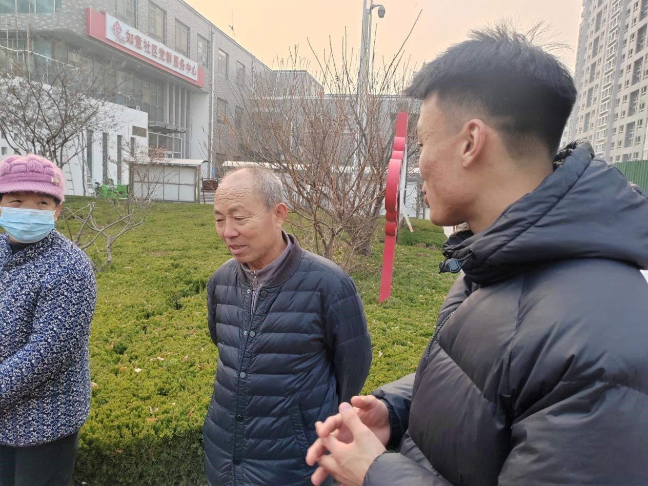 随着城市化进程的加速,社区管理面临日益严峻的挑战。由于社区人员配置和资源有限,实际管理效果往往难以达到预期目标。特别是在一些老旧社区、城乡结合部等地区,老年人、青少年问题突出、社区关怀、社区管理问题尤为严重,1月14日,实践队深入小雪街道如意社区,与居民们进行交流。